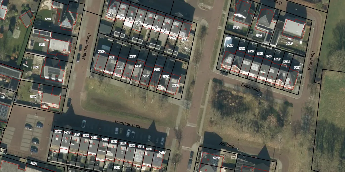 Gebruik de zoekbalk of klik op een perceel voor informatie over de adressen binnen dit perceel.
