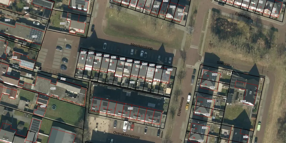 Meerkensloop 7 is gelegen op kadastraal perceel HEE02B7515. Deze kadastrale aanduiding is uniek en wordt gebruikt door het Kadaster om eigendomsrechten en andere zakelijke rechten vast te leggen. Het perceel maakt onderdeel uit van de kadastrale gemeente Heesch.