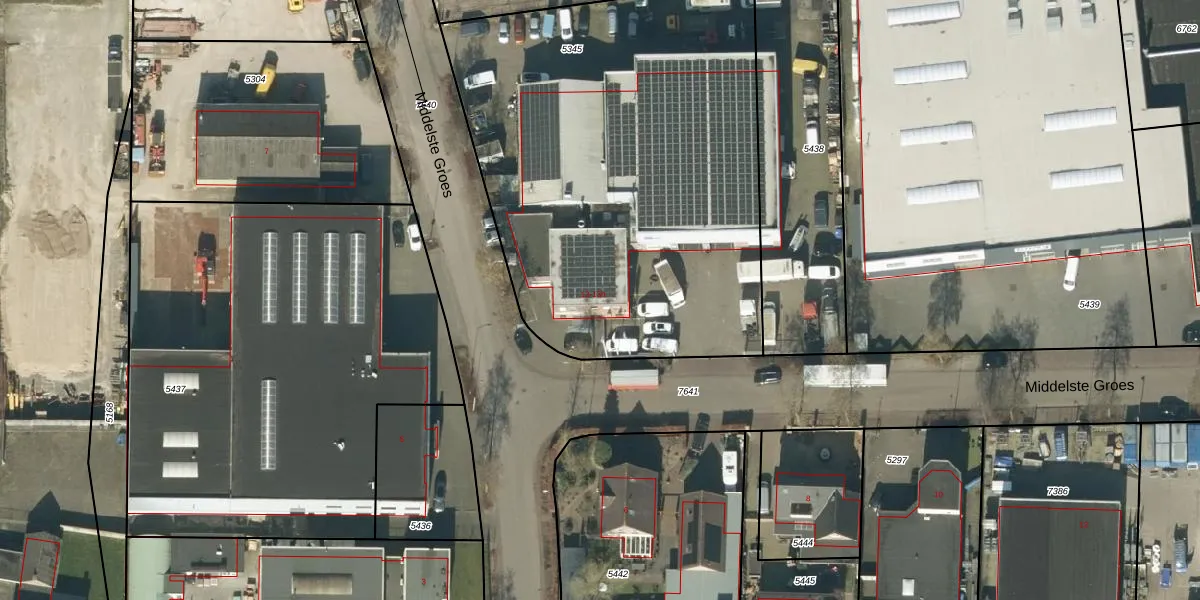Middelste Groes 13-b is gelegen op kadastraal perceel HEE02A5345. Deze kadastrale aanduiding is uniek en wordt gebruikt door het Kadaster om eigendomsrechten en andere zakelijke rechten vast te leggen. Het perceel maakt onderdeel uit van de kadastrale gemeente Heesch.