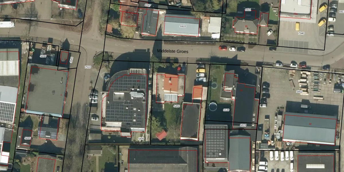 Middelste Groes 18 is gelegen op kadastraal perceel HEE02A5450. Deze kadastrale aanduiding is uniek en wordt gebruikt door het Kadaster om eigendomsrechten en andere zakelijke rechten vast te leggen. Het perceel maakt onderdeel uit van de kadastrale gemeente Heesch.