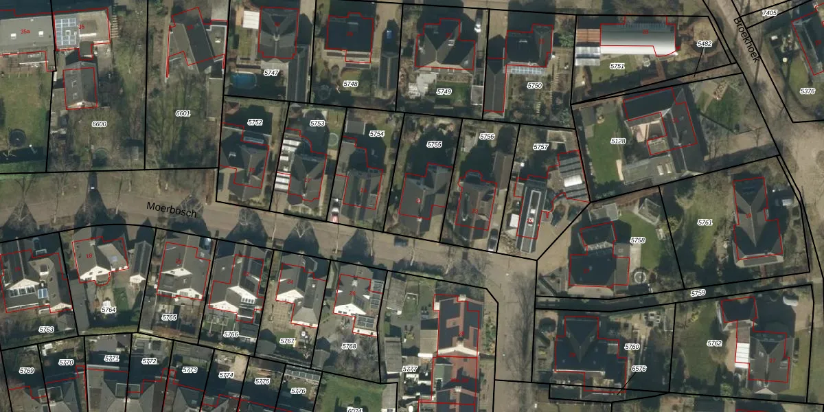 Het perceel waarop Moerbosch 21 staat heeft een oppervlakte van 422 m². Dit is een groot perceel. De perceeloppervlakte wordt geregistreerd door het Kadaster. Gedetailleerde informatie over de maten van dit perceel kunt u vinden in het rapport Kadastrale kaart met maatvoering van Moerbosch 21.