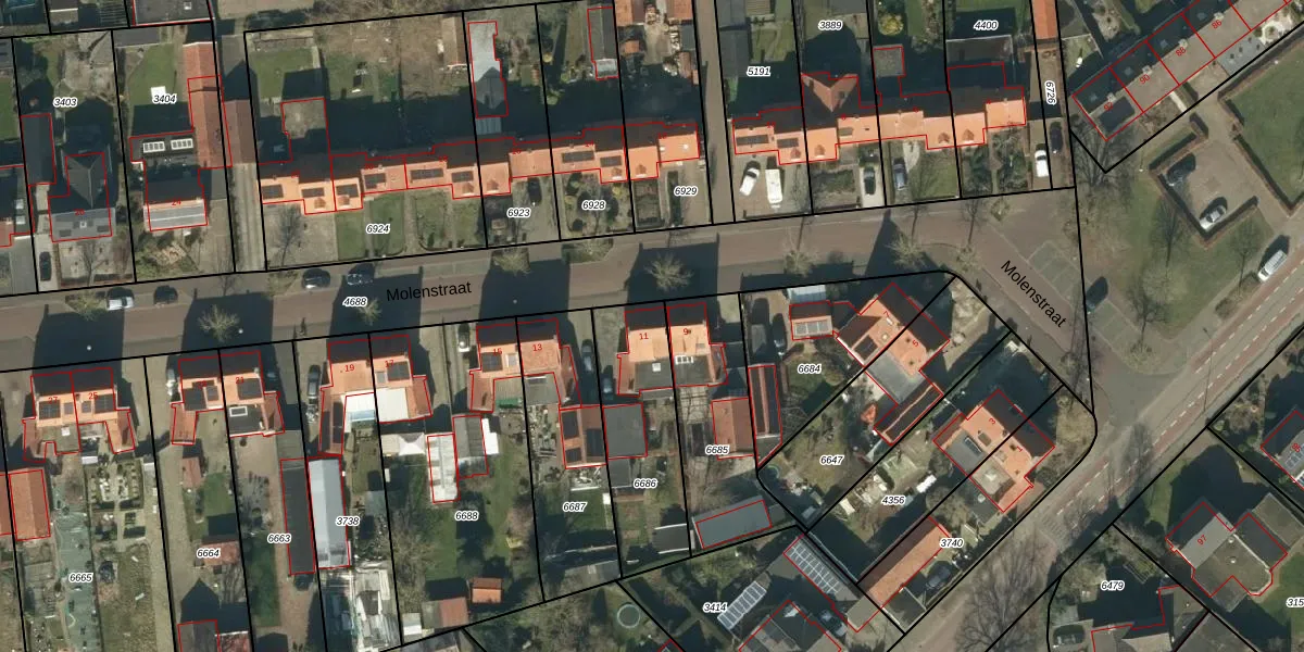 Gebruik de zoekbalk of klik op een perceel voor informatie over de adressen binnen dit perceel.