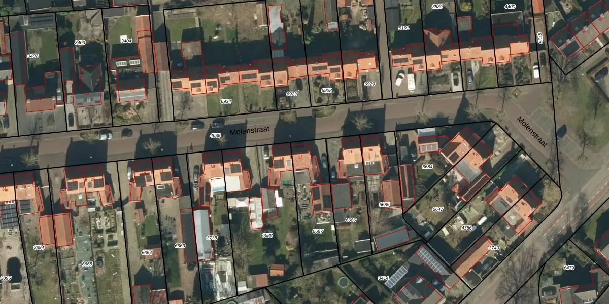 Molenstraat 13 is gelegen op kadastraal perceel HEE02A6687. Deze kadastrale aanduiding is uniek en wordt gebruikt door het Kadaster om eigendomsrechten en andere zakelijke rechten vast te leggen. Het perceel maakt onderdeel uit van de kadastrale gemeente Heesch.