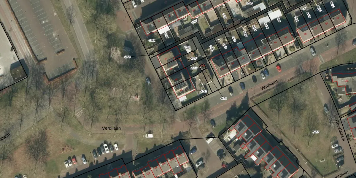 Gebruik de zoekbalk of klik op een perceel voor informatie over de adressen binnen dit perceel.