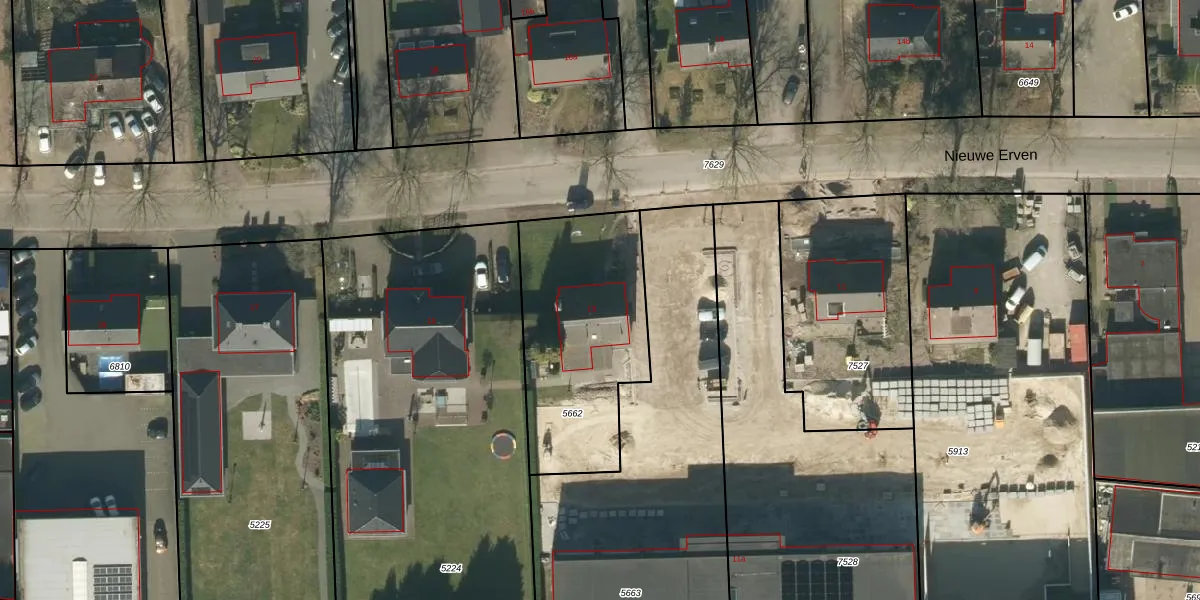 Nieuwe Erven 13 is gelegen op kadastraal perceel HEE02A5662. Deze kadastrale aanduiding is uniek en wordt gebruikt door het Kadaster om eigendomsrechten en andere zakelijke rechten vast te leggen. Het perceel maakt onderdeel uit van de kadastrale gemeente Heesch.