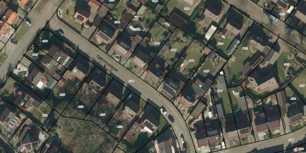 Het perceel waarop Ophoviusstraat 7 staat heeft een oppervlakte van 562 m². Dit is een groot perceel. De perceeloppervlakte wordt geregistreerd door het Kadaster. Gedetailleerde informatie over de maten van dit perceel kunt u vinden in het rapport Kadastrale kaart met maatvoering van Ophoviusstraat 7.