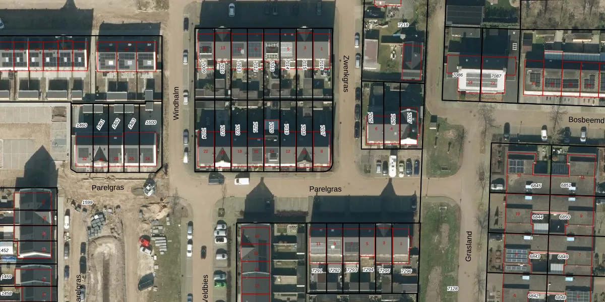 Gebruik de zoekbalk of klik op een perceel voor informatie over de adressen binnen dit perceel.