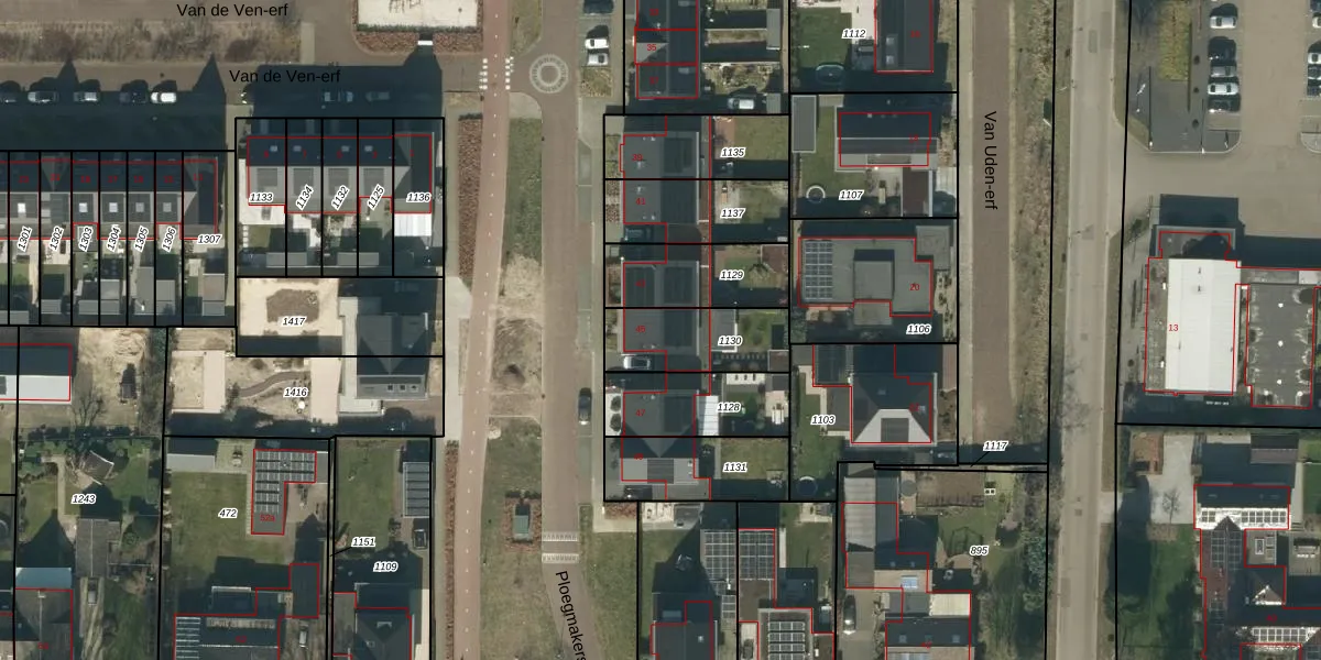 Ploegmakers-erf 45 is gelegen op kadastraal perceel HEE02F1130. Deze kadastrale aanduiding is uniek en wordt gebruikt door het Kadaster om eigendomsrechten en andere zakelijke rechten vast te leggen. Het perceel maakt onderdeel uit van de kadastrale gemeente Heesch.