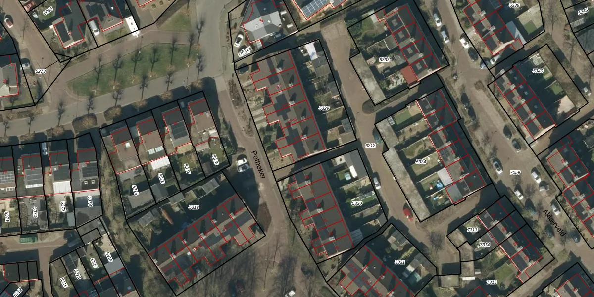 Het perceel waarop Potbeker 23 staat heeft een oppervlakte van 1100 m². Dit is een zeer groot perceel. De perceeloppervlakte wordt geregistreerd door het Kadaster. Gedetailleerde informatie over de maten van dit perceel kunt u vinden in het rapport Kadastrale kaart met maatvoering van Potbeker 23.
