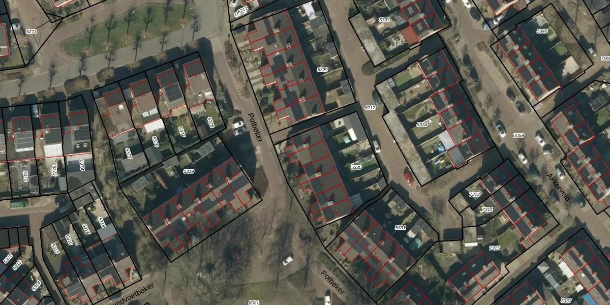 Het perceel waarop Potbeker 27 staat heeft een oppervlakte van 870 m². Dit is een groot perceel. De perceeloppervlakte wordt geregistreerd door het Kadaster. Gedetailleerde informatie over de maten van dit perceel kunt u vinden in het rapport Kadastrale kaart met maatvoering van Potbeker 27.