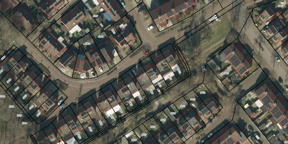 Het perceel waarop Potbeker 34 staat heeft een oppervlakte van 205 m². Dit is een middelgroot perceel. De perceeloppervlakte wordt geregistreerd door het Kadaster. Gedetailleerde informatie over de maten van dit perceel kunt u vinden in het rapport Kadastrale kaart met maatvoering van Potbeker 34.