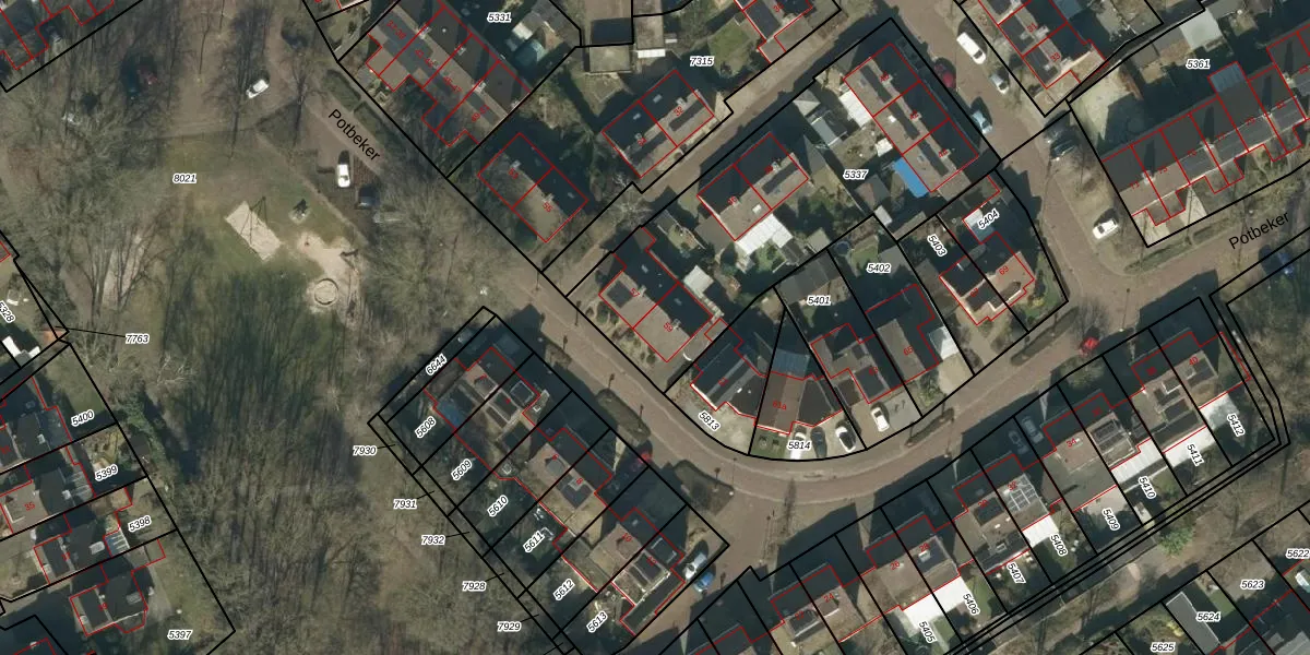 Het perceel waarop Potbeker 59 staat heeft een oppervlakte van 1458 m². Dit is een zeer groot perceel. De perceeloppervlakte wordt geregistreerd door het Kadaster. Gedetailleerde informatie over de maten van dit perceel kunt u vinden in het rapport Kadastrale kaart met maatvoering van Potbeker 59.