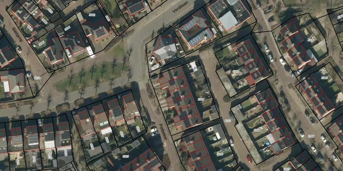 Het perceel waarop Potbeker 7 staat heeft een oppervlakte van 1100 m². Dit is een zeer groot perceel. De perceeloppervlakte wordt geregistreerd door het Kadaster. Gedetailleerde informatie over de maten van dit perceel kunt u vinden in het rapport Kadastrale kaart met maatvoering van Potbeker 7.