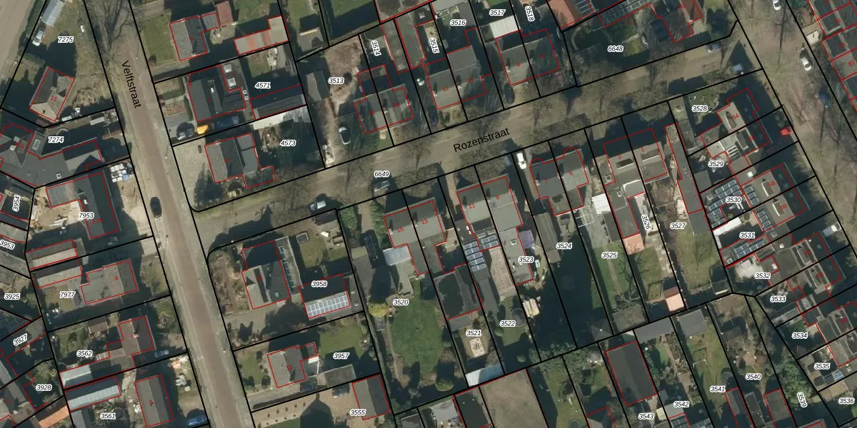 Gebruik de zoekbalk of klik op een perceel voor informatie over de adressen binnen dit perceel.