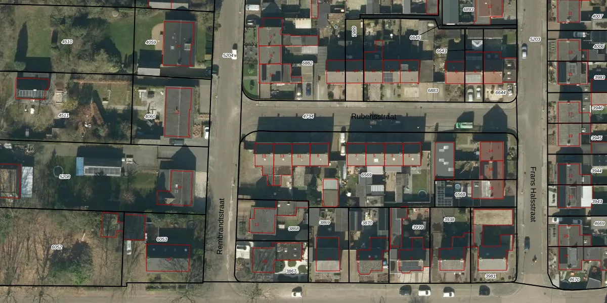 Rubensstraat 11 is gelegen op kadastraal perceel HEE02A6569. Deze kadastrale aanduiding is uniek en wordt gebruikt door het Kadaster om eigendomsrechten en andere zakelijke rechten vast te leggen. Het perceel maakt onderdeel uit van de kadastrale gemeente Heesch.