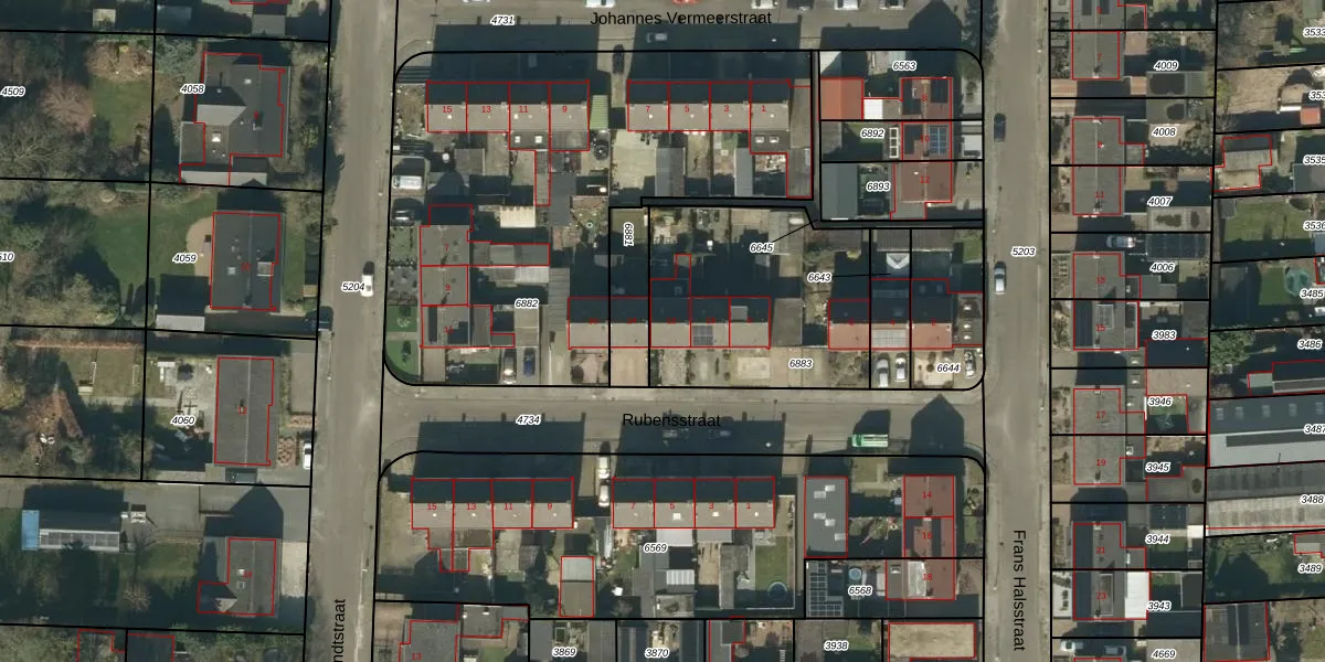 Rubensstraat 12 is gelegen op kadastraal perceel HEE02A6883. Deze kadastrale aanduiding is uniek en wordt gebruikt door het Kadaster om eigendomsrechten en andere zakelijke rechten vast te leggen. Het perceel maakt onderdeel uit van de kadastrale gemeente Heesch.