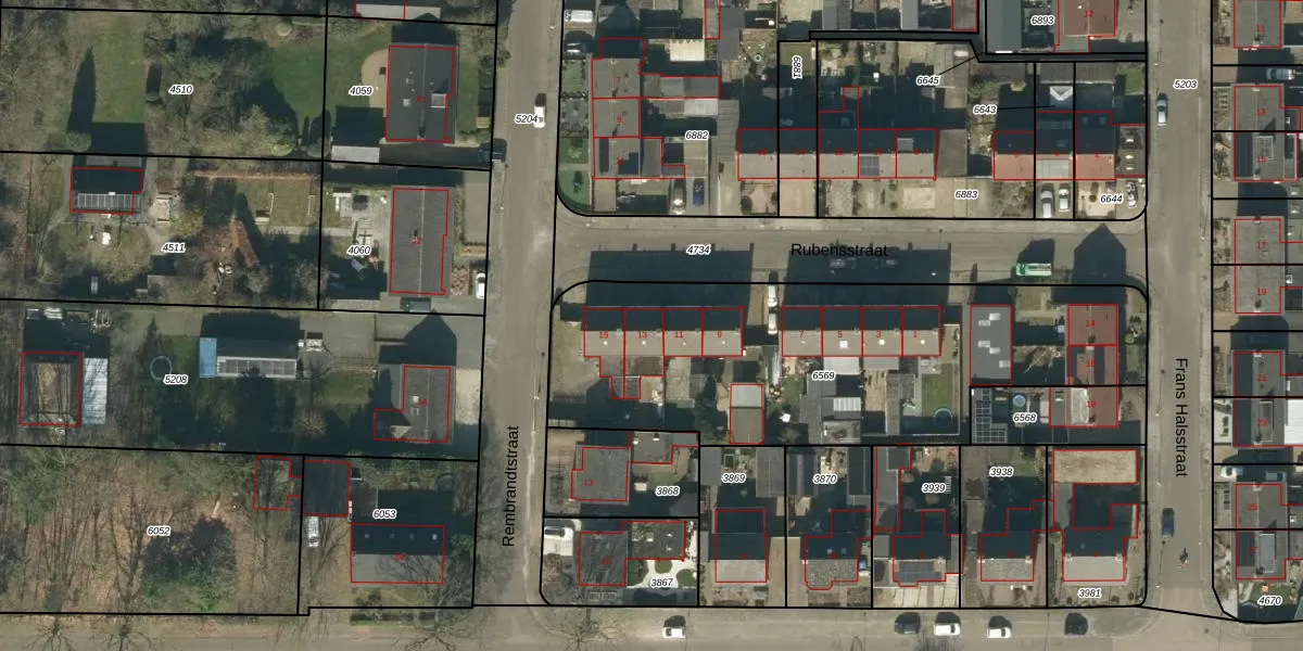 Rubensstraat 13 is gelegen op kadastraal perceel HEE02A6569. Deze kadastrale aanduiding is uniek en wordt gebruikt door het Kadaster om eigendomsrechten en andere zakelijke rechten vast te leggen. Het perceel maakt onderdeel uit van de kadastrale gemeente Heesch.