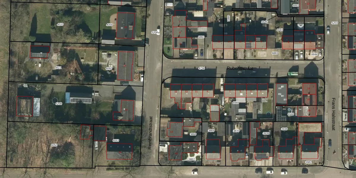 Rubensstraat 15 is gelegen op kadastraal perceel HEE02A6569. Deze kadastrale aanduiding is uniek en wordt gebruikt door het Kadaster om eigendomsrechten en andere zakelijke rechten vast te leggen. Het perceel maakt onderdeel uit van de kadastrale gemeente Heesch.