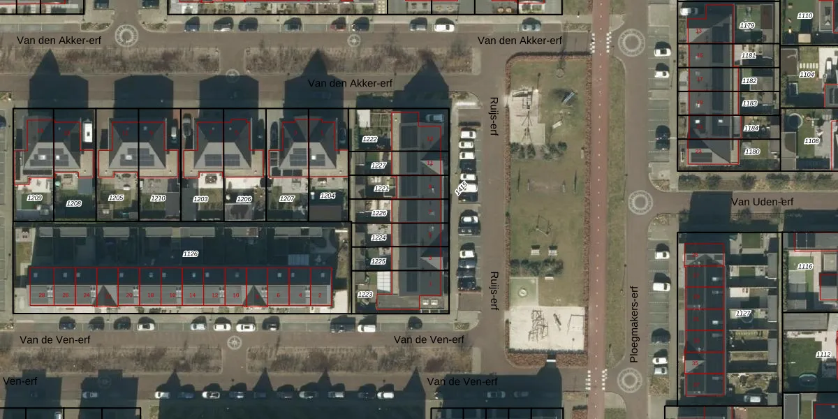 Gebruik de zoekbalk of klik op een perceel voor informatie over de adressen binnen dit perceel.