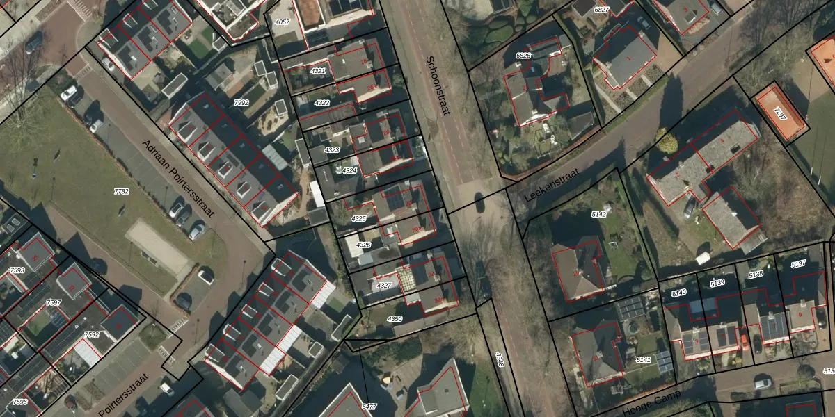 Het perceel waarop Schoonstraat 30 staat heeft een oppervlakte van 237 m². Dit is een middelgroot perceel. De perceeloppervlakte wordt geregistreerd door het Kadaster. Gedetailleerde informatie over de maten van dit perceel kunt u vinden in het rapport Kadastrale kaart met maatvoering van Schoonstraat 30.