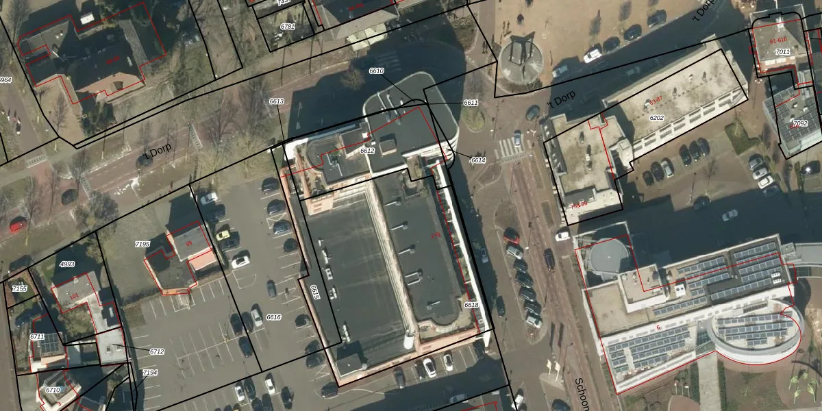 Het perceel waarop Schoonstraat 4-e staat heeft een oppervlakte van 1618 m². Dit is een zeer groot perceel. De perceeloppervlakte wordt geregistreerd door het Kadaster. Gedetailleerde informatie over de maten van dit perceel kunt u vinden in het rapport Kadastrale kaart met maatvoering van Schoonstraat 4-e.