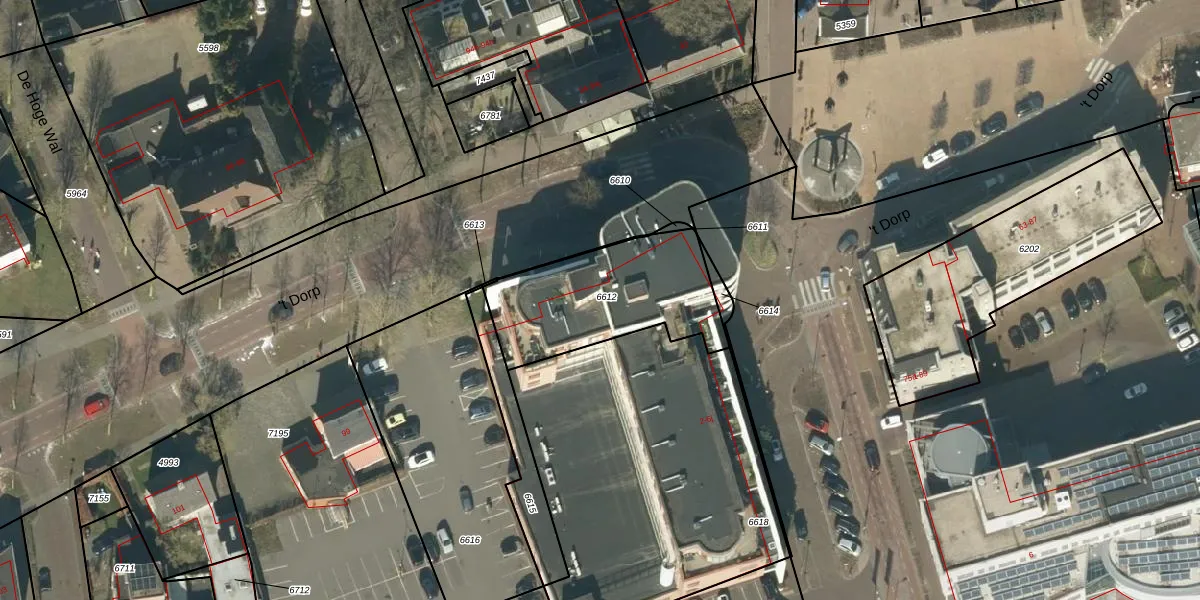 Het perceel waarop Schoonstraat 6-j staat heeft een oppervlakte van 608 m². Dit is een groot perceel. De perceeloppervlakte wordt geregistreerd door het Kadaster. Gedetailleerde informatie over de maten van dit perceel kunt u vinden in het rapport Kadastrale kaart met maatvoering van Schoonstraat 6-j.