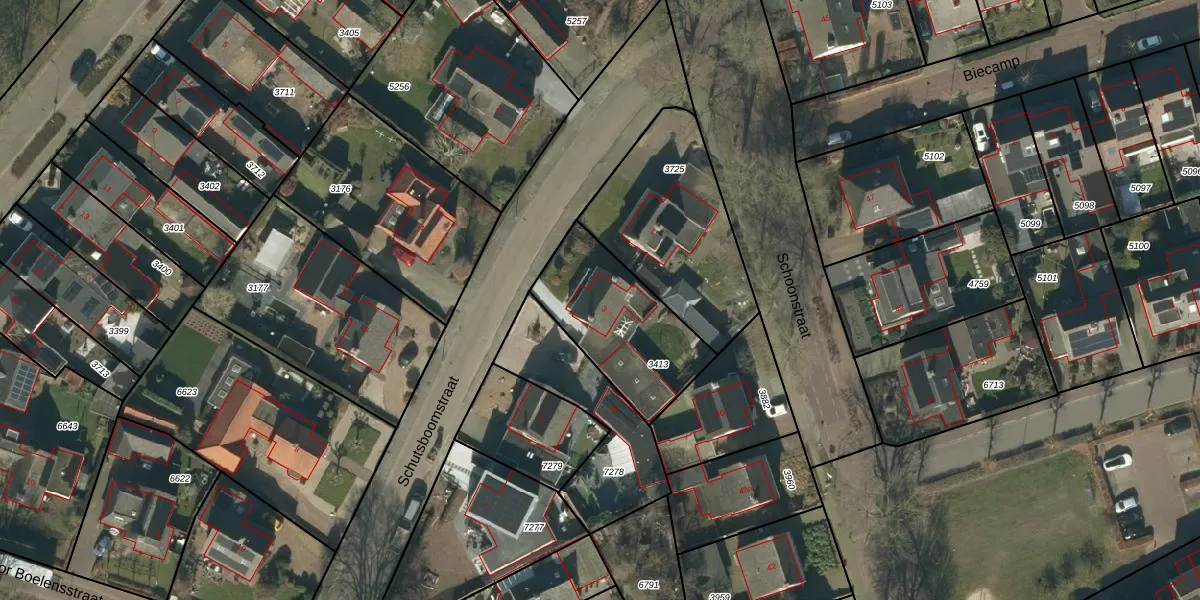 Het perceel waarop Schutsboomstraat 3 staat heeft een oppervlakte van 480 m². Dit is een groot perceel. De perceeloppervlakte wordt geregistreerd door het Kadaster. Gedetailleerde informatie over de maten van dit perceel kunt u vinden in het rapport Kadastrale kaart met maatvoering van Schutsboomstraat 3.