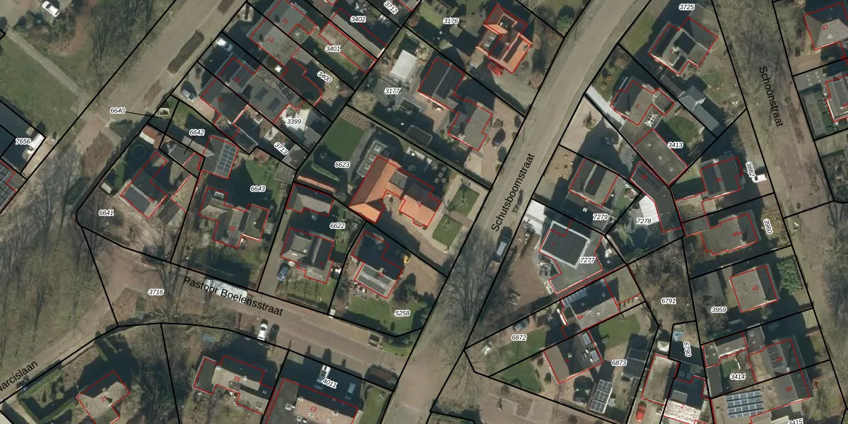 Schutsboomstraat 8 is gelegen op kadastraal perceel HEE02B6623. Deze kadastrale aanduiding is uniek en wordt gebruikt door het Kadaster om eigendomsrechten en andere zakelijke rechten vast te leggen. Het perceel maakt onderdeel uit van de kadastrale gemeente Heesch.