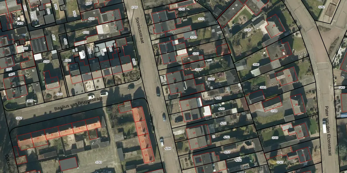 Sonniusstraat 13 is gelegen op kadastraal perceel HEE02B3755. Deze kadastrale aanduiding is uniek en wordt gebruikt door het Kadaster om eigendomsrechten en andere zakelijke rechten vast te leggen. Het perceel maakt onderdeel uit van de kadastrale gemeente Heesch.