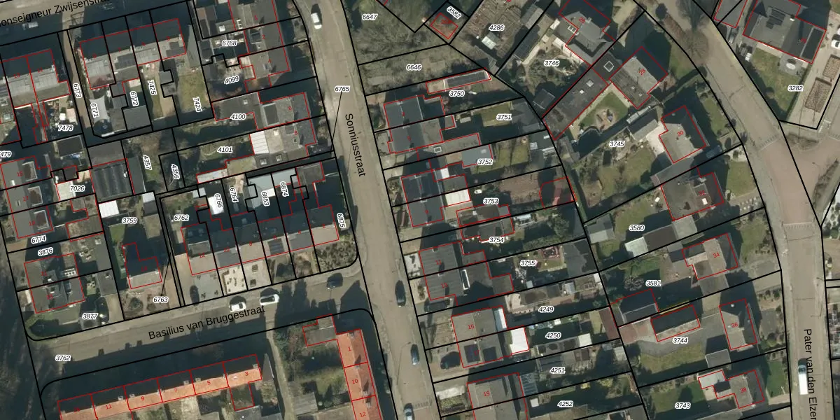Sonniusstraat 9 is gelegen op kadastraal perceel HEE02B3753. Deze kadastrale aanduiding is uniek en wordt gebruikt door het Kadaster om eigendomsrechten en andere zakelijke rechten vast te leggen. Het perceel maakt onderdeel uit van de kadastrale gemeente Heesch.