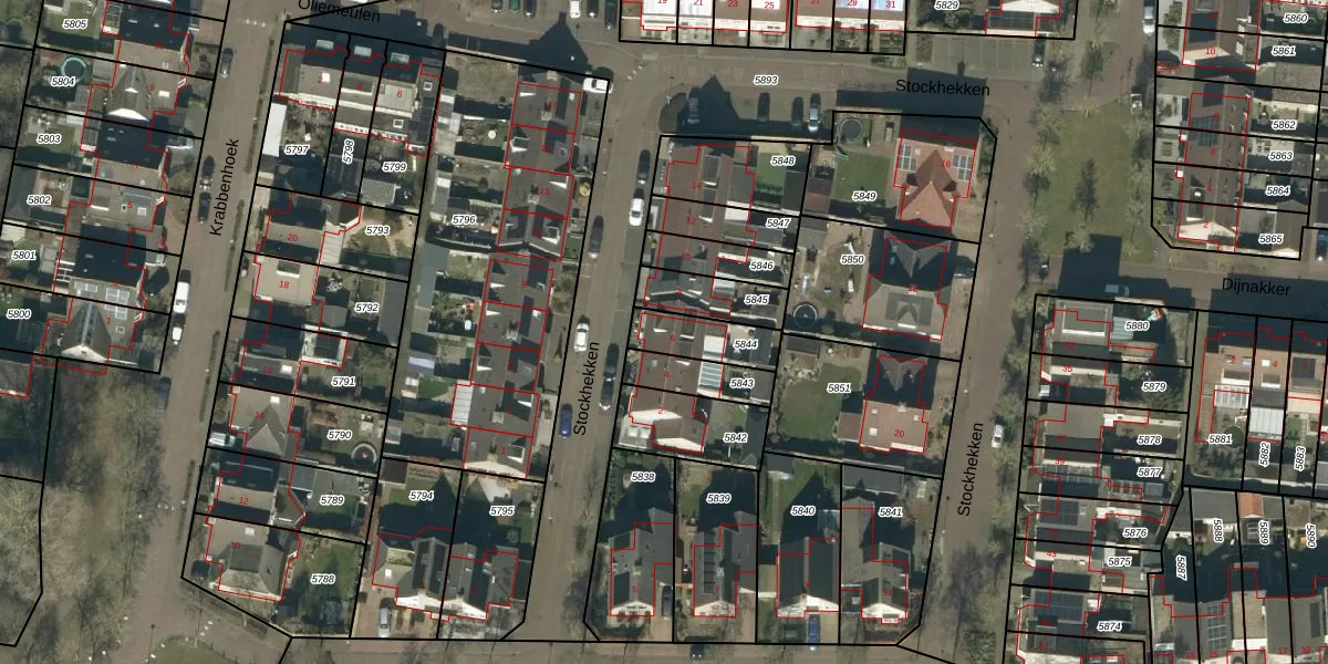 Stockhekken 6 is gelegen op kadastraal perceel HEE02A5844. Deze kadastrale aanduiding is uniek en wordt gebruikt door het Kadaster om eigendomsrechten en andere zakelijke rechten vast te leggen. Het perceel maakt onderdeel uit van de kadastrale gemeente Heesch.