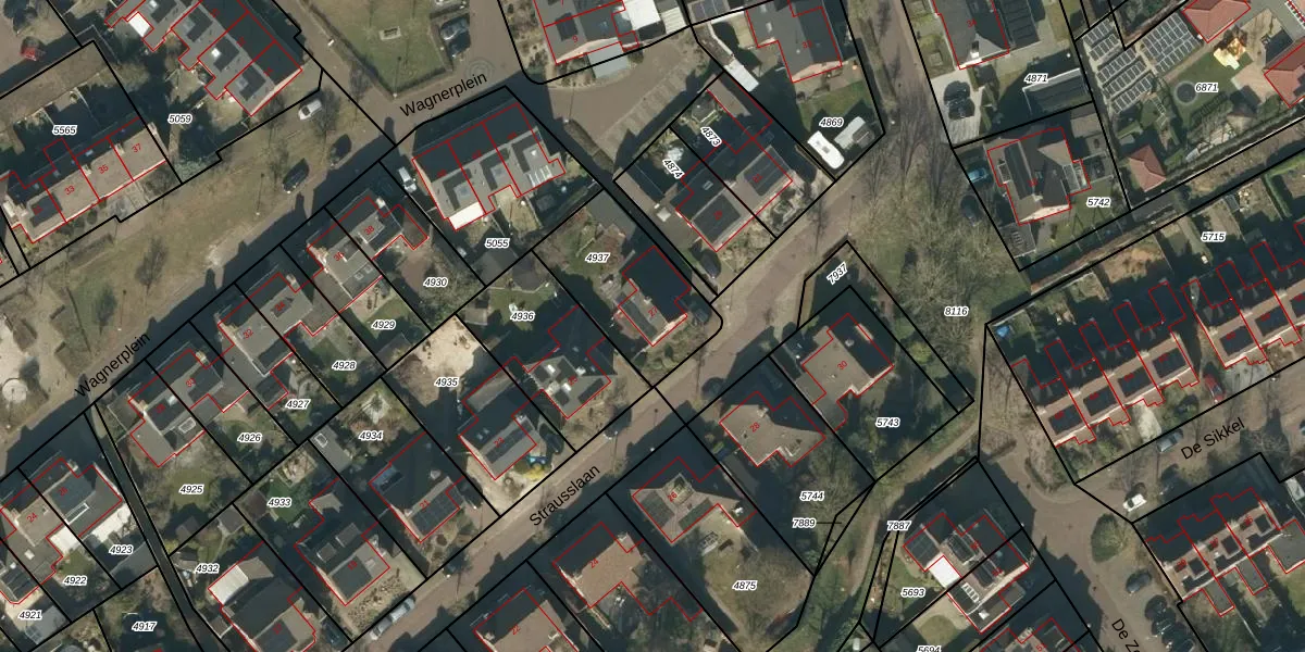Het perceel waarop Strausslaan 27 staat heeft een oppervlakte van 418 m². Dit is een groot perceel. De perceeloppervlakte wordt geregistreerd door het Kadaster. Gedetailleerde informatie over de maten van dit perceel kunt u vinden in het rapport Kadastrale kaart met maatvoering van Strausslaan 27.