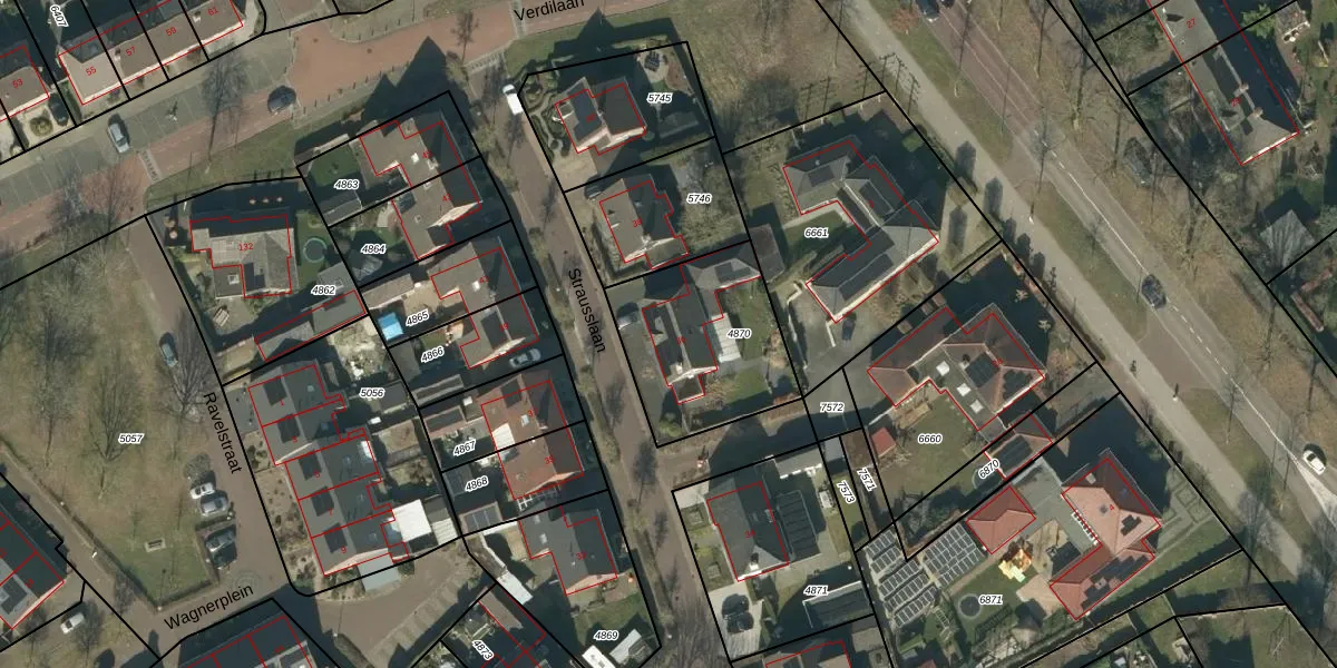 Het perceel waarop Strausslaan 36 staat heeft een oppervlakte van 576 m². Dit is een groot perceel. De perceeloppervlakte wordt geregistreerd door het Kadaster. Gedetailleerde informatie over de maten van dit perceel kunt u vinden in het rapport Kadastrale kaart met maatvoering van Strausslaan 36.