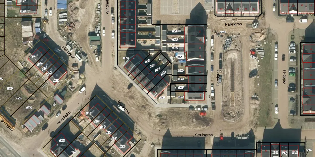 Het perceel waarop Struisgras 16 staat heeft een oppervlakte van 108 m². Dit is een middelgroot perceel. De perceeloppervlakte wordt geregistreerd door het Kadaster. Gedetailleerde informatie over de maten van dit perceel kunt u vinden in het rapport Kadastrale kaart met maatvoering van Struisgras 16.