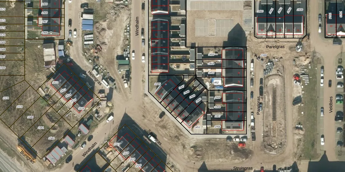 Gebruik de zoekbalk of klik op een perceel voor informatie over de adressen binnen dit perceel.