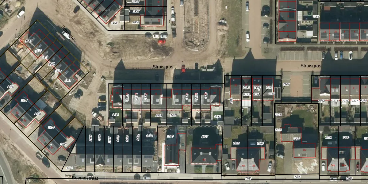 Gebruik de zoekbalk of klik op een perceel voor informatie over de adressen binnen dit perceel.