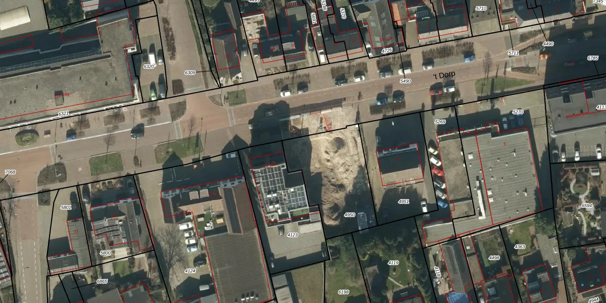 't Dorp 11-b is gelegen op kadastraal perceel HEE02B4950. Deze kadastrale aanduiding is uniek en wordt gebruikt door het Kadaster om eigendomsrechten en andere zakelijke rechten vast te leggen. Het perceel maakt onderdeel uit van de kadastrale gemeente Heesch.