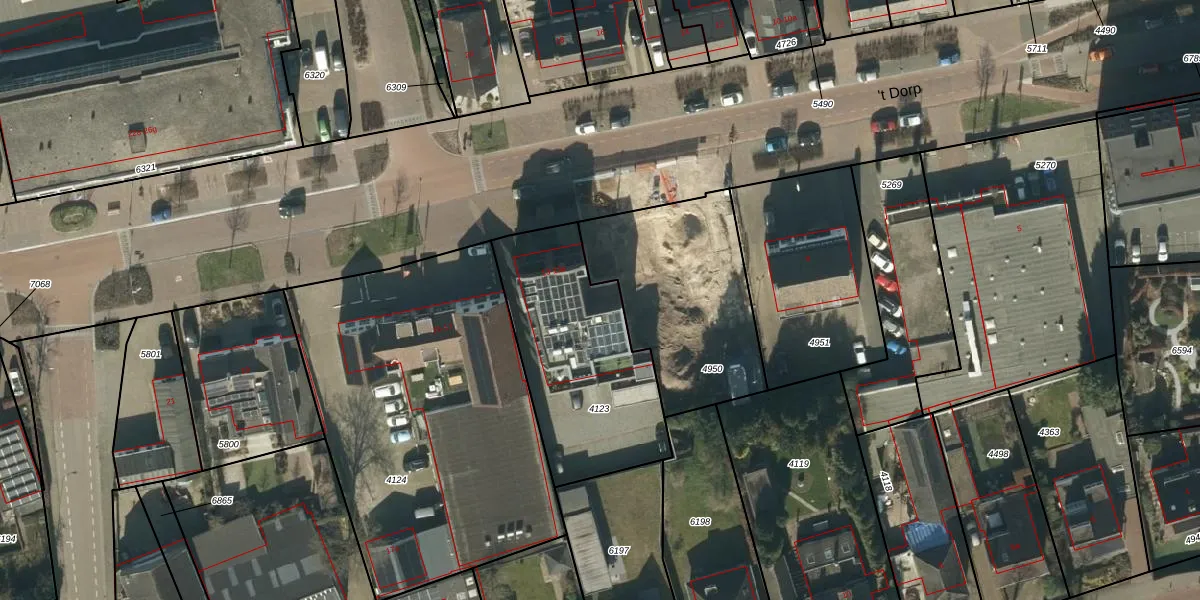 Het perceel waarop 't Dorp 13-b staat heeft een oppervlakte van 780 m². Dit is een groot perceel. De perceeloppervlakte wordt geregistreerd door het Kadaster. Gedetailleerde informatie over de maten van dit perceel kunt u vinden in het rapport Kadastrale kaart met maatvoering van 't Dorp 13-b.