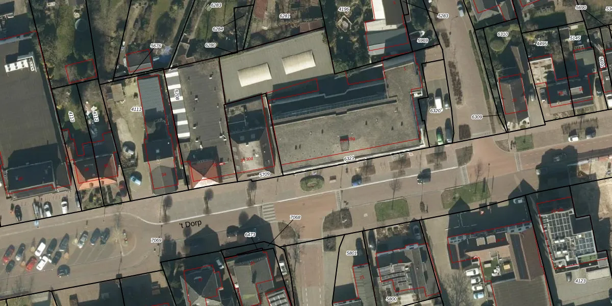 Het perceel waarop 't Dorp 22-e staat heeft een oppervlakte van 2093 m². Dit is een zeer groot perceel. De perceeloppervlakte wordt geregistreerd door het Kadaster. Gedetailleerde informatie over de maten van dit perceel kunt u vinden in het rapport Kadastrale kaart met maatvoering van 't Dorp 22-e.