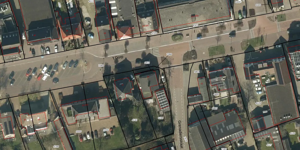 Gebruik de zoekbalk of klik op een perceel voor informatie over de adressen binnen dit perceel.