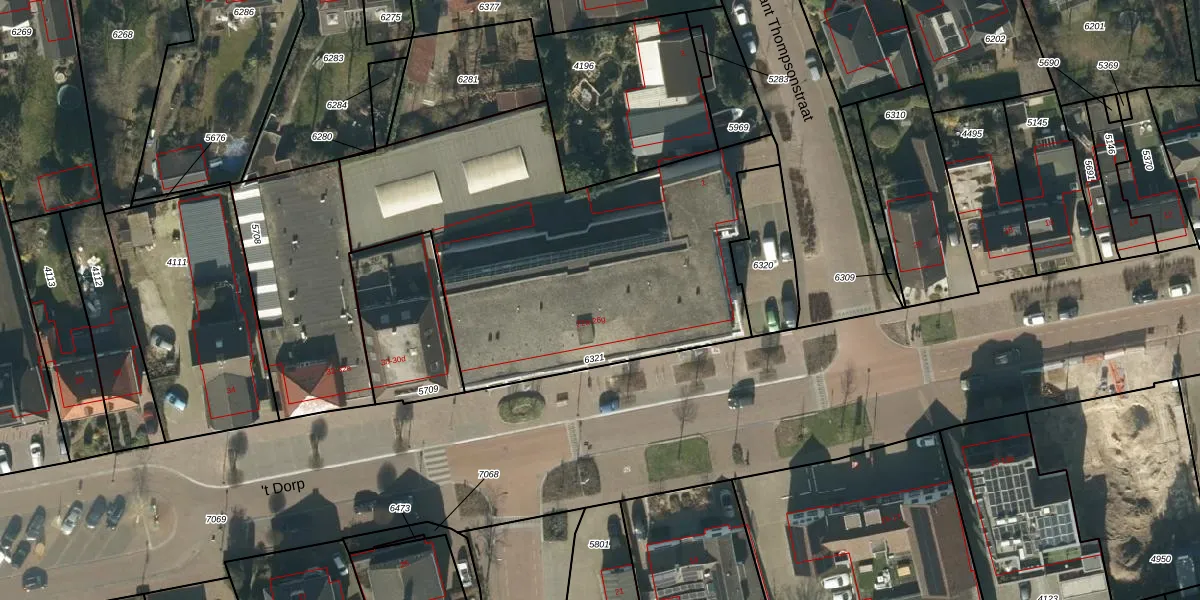 Het perceel waarop 't Dorp 26-d staat heeft een oppervlakte van 2093 m². Dit is een zeer groot perceel. De perceeloppervlakte wordt geregistreerd door het Kadaster. Gedetailleerde informatie over de maten van dit perceel kunt u vinden in het rapport Kadastrale kaart met maatvoering van 't Dorp 26-d.