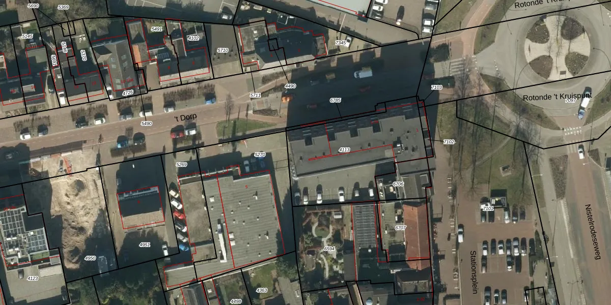 Het perceel waarop 't Dorp 3-x staat heeft een oppervlakte van 1090 m². Dit is een zeer groot perceel. De perceeloppervlakte wordt geregistreerd door het Kadaster. Gedetailleerde informatie over de maten van dit perceel kunt u vinden in het rapport Kadastrale kaart met maatvoering van 't Dorp 3-x.