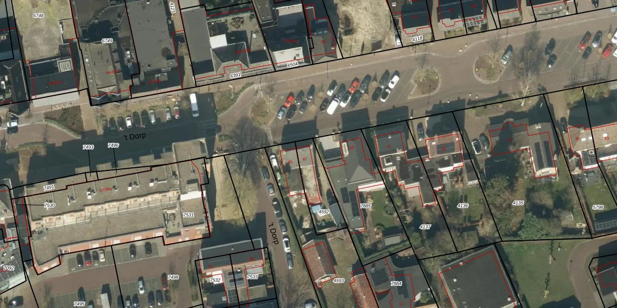 't Dorp 47 is gelegen op kadastraal perceel HEE02B4592. Deze kadastrale aanduiding is uniek en wordt gebruikt door het Kadaster om eigendomsrechten en andere zakelijke rechten vast te leggen. Het perceel maakt onderdeel uit van de kadastrale gemeente Heesch.