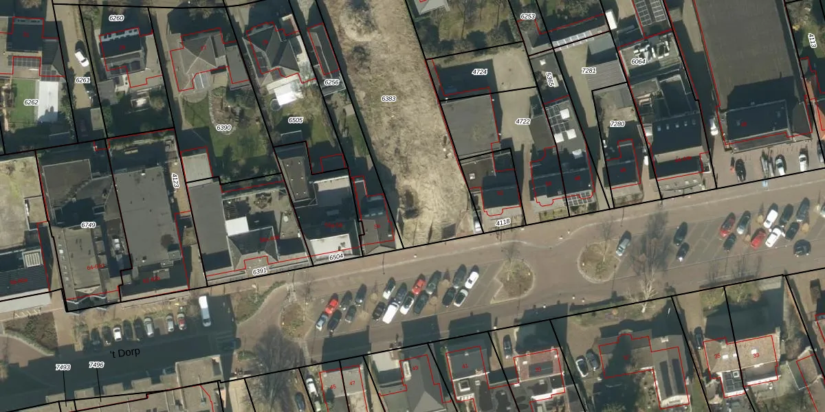 Het perceel waarop 't Dorp 54-b staat heeft een oppervlakte van 1382 m². Dit is een zeer groot perceel. De perceeloppervlakte wordt geregistreerd door het Kadaster. Gedetailleerde informatie over de maten van dit perceel kunt u vinden in het rapport Kadastrale kaart met maatvoering van 't Dorp 54-b.