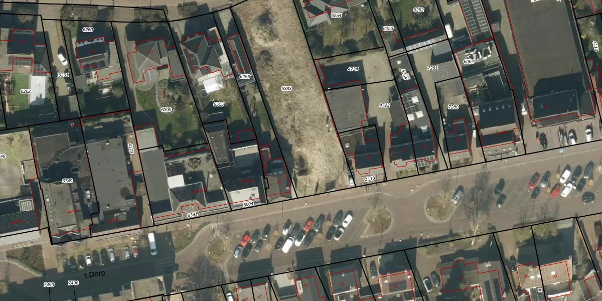 't Dorp 54-d is gelegen op kadastraal perceel HEE02A6383. Deze kadastrale aanduiding is uniek en wordt gebruikt door het Kadaster om eigendomsrechten en andere zakelijke rechten vast te leggen. Het perceel maakt onderdeel uit van de kadastrale gemeente Heesch.