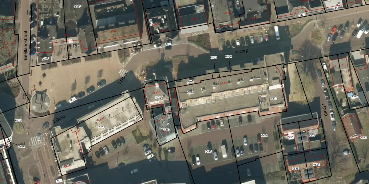 't Dorp 57-f is gelegen op kadastraal perceel HEE02B7531. Deze kadastrale aanduiding is uniek en wordt gebruikt door het Kadaster om eigendomsrechten en andere zakelijke rechten vast te leggen. Het perceel maakt onderdeel uit van de kadastrale gemeente Heesch.
