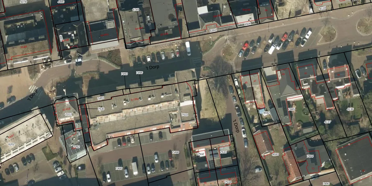 't Dorp 59-a is gelegen op kadastraal perceel HEE02B7531. Deze kadastrale aanduiding is uniek en wordt gebruikt door het Kadaster om eigendomsrechten en andere zakelijke rechten vast te leggen. Het perceel maakt onderdeel uit van de kadastrale gemeente Heesch.