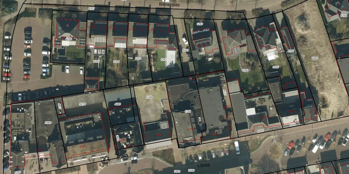 Het perceel waarop 't Dorp 64-d staat heeft een oppervlakte van 660 m². Dit is een groot perceel. De perceeloppervlakte wordt geregistreerd door het Kadaster. Gedetailleerde informatie over de maten van dit perceel kunt u vinden in het rapport Kadastrale kaart met maatvoering van 't Dorp 64-d.
