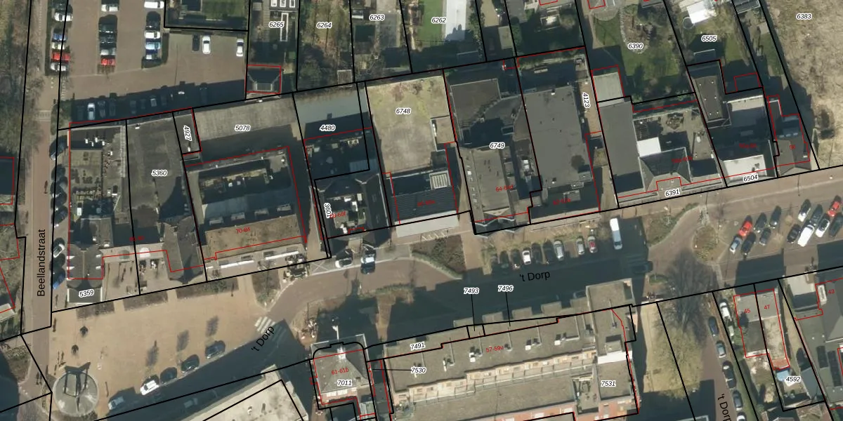Het perceel waarop 't Dorp 66 staat heeft een oppervlakte van 650 m². Dit is een groot perceel. De perceeloppervlakte wordt geregistreerd door het Kadaster. Gedetailleerde informatie over de maten van dit perceel kunt u vinden in het rapport Kadastrale kaart met maatvoering van 't Dorp 66.