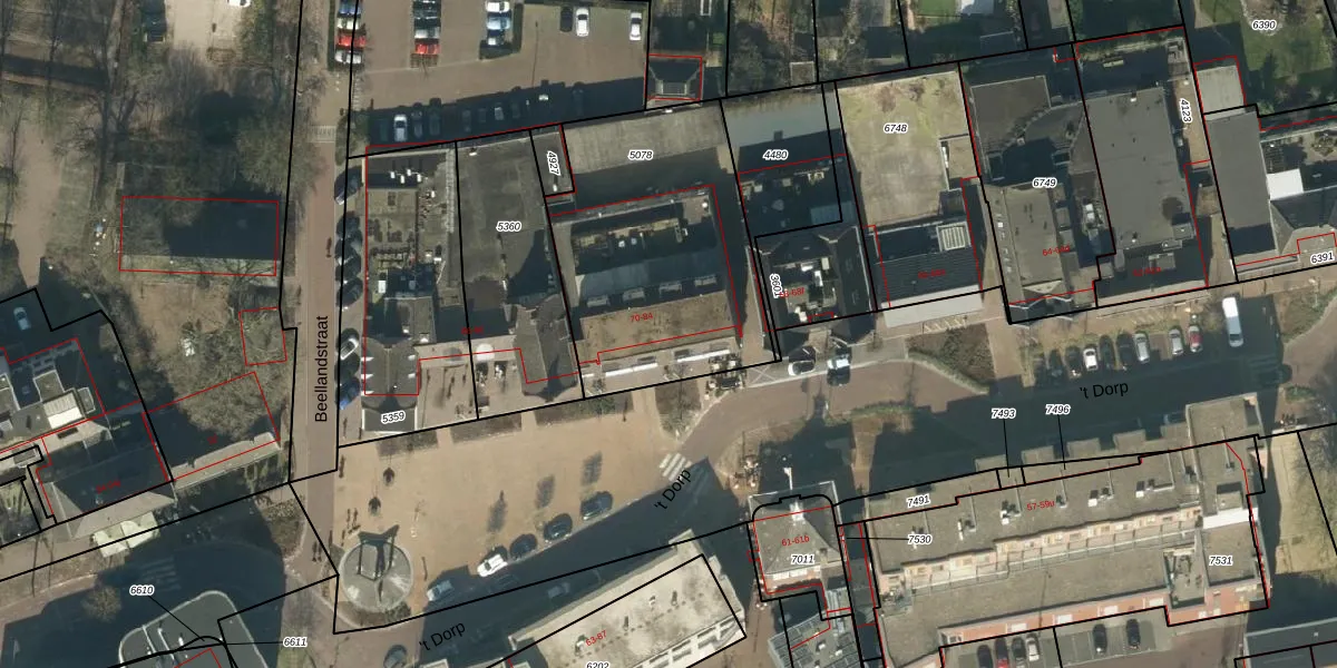 't Dorp 72 is gelegen op kadastraal perceel HEE02A5078. Deze kadastrale aanduiding is uniek en wordt gebruikt door het Kadaster om eigendomsrechten en andere zakelijke rechten vast te leggen. Het perceel maakt onderdeel uit van de kadastrale gemeente Heesch.